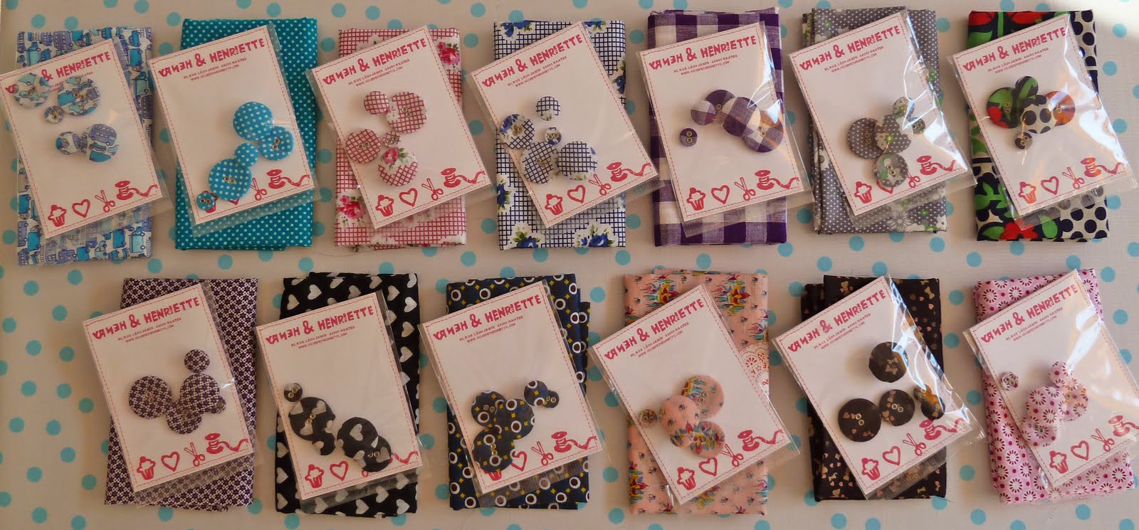 Henriette vous propose un large choix de boutons recouverts ( à oeillets ou boules) dans 5 diamètres différents ainsi que leurs coupon assorti ( disponible également au mètre).