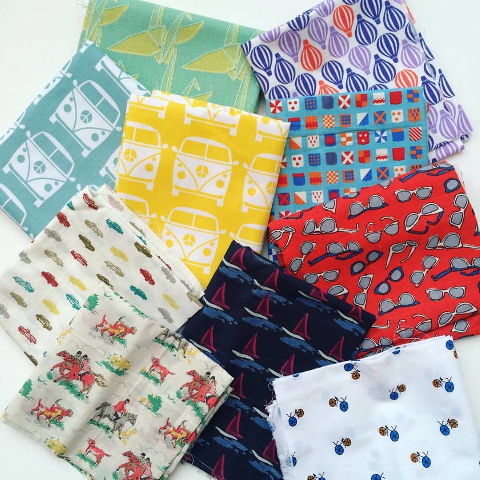 Des coupons de tissus à motifs mixtes pour réaliser des accessoires pour bébés comme des bavoirs, protèges carnets de santé, trousses, sacs ou autres…