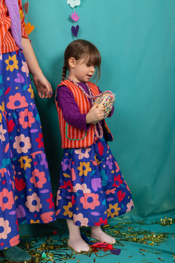Ce kit vous apprendra à réaliser une jupe à trois volants pour une petite fille. Les tailles vont de 3 ans à 12 ans. C’est aussi la grande tendance avec sa taille froncée et ses motifs originaux.