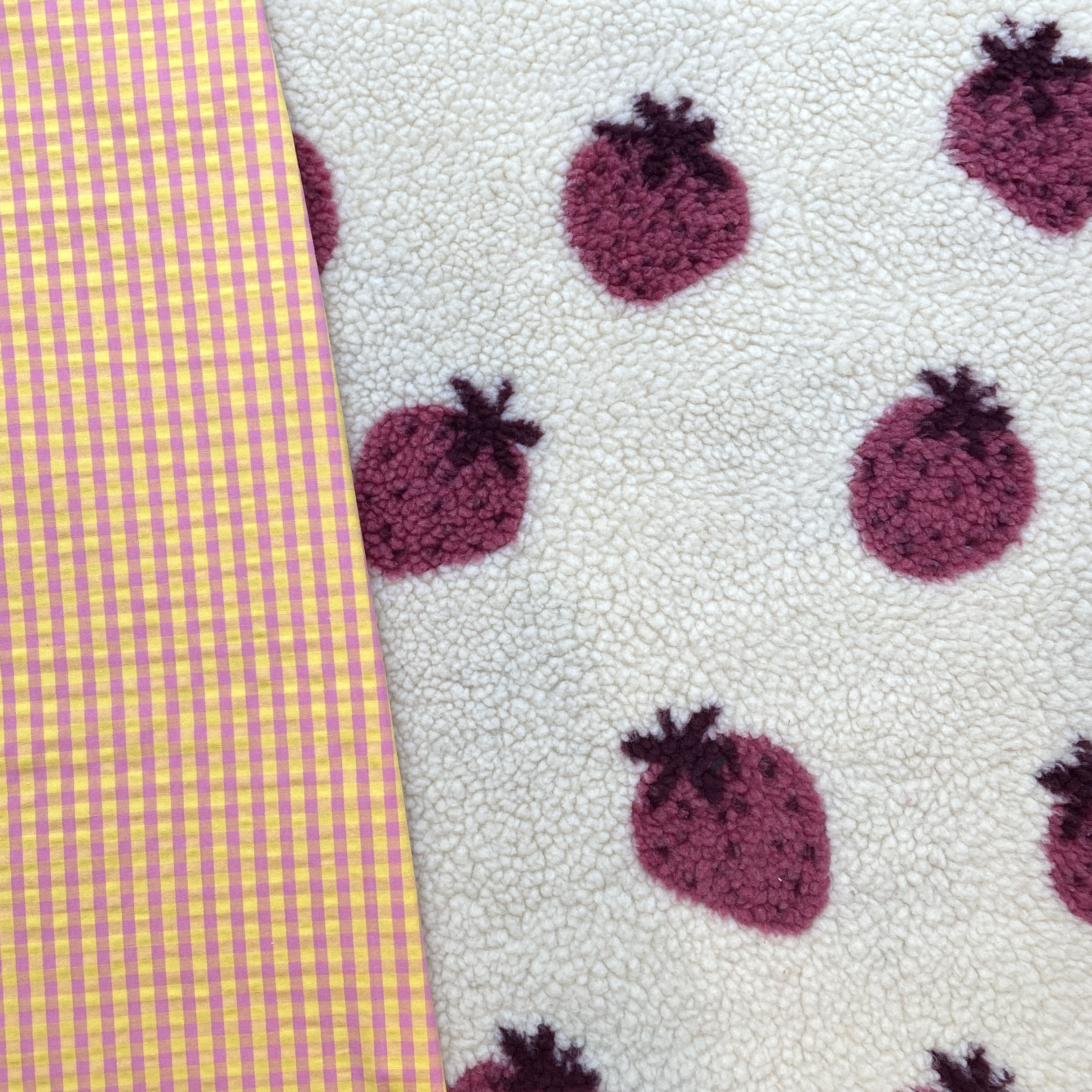 Tissu sherpa fraise convient parfaitement pour coudre des vestes, manteaux, sweats pour enfants ou adultes.